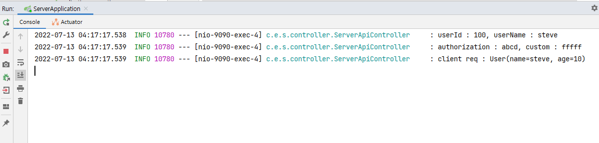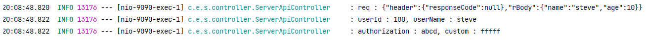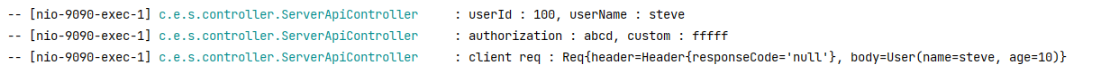 log.info("authorization : {}, custom : {}",authorization,customHeader);