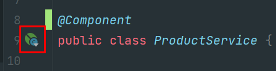 '빈' 아이콘 확인 → 스프링 IoC 에서 관리할 '빈' 클래스라는 표시