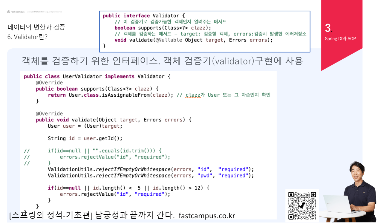UserValidator라는 클래스를 구현해보았다. (주석 확인)