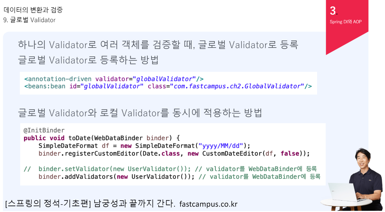 binder.setValidator(new UserValidator()); //UserValidator를 WebDataBinder의 로컬 validator로 등록